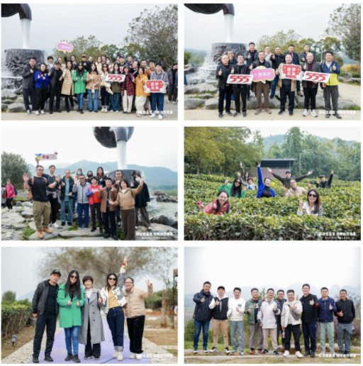 بدأ الحدث بمقدمة موجزة من المرشد حول النشاط وجلسة اختبار. كانت الوجهة الأولى هي حديقة الشاي "Hanging Sky Kettle" في Yingde، والمعروفة باسم "موطن الشاي الأسود الصيني". كان الدخول إلى حديقة الشاي بمثابة دخول محيط أخضر شاسع. كانت التلال مغطاة بطبقات من أشجار الشاي الخصبة، مرتبة بدقة في صفوف مثل لوحة فنية رائعة رسمتها الطبيعة. بعد استكشاف حديقة الشاي، شرعت المجموعة في رحلة ثقافة الشاي العميقة بقيادة أحد أساتذة الشاي. قدم أستاذ الشاي، وهو يحمل أوراق الشاي الرقيقة، شرحًا مفصلاً لأنواع وتصنيفات الشاي. بحركات ماهرة ورشيقة، أوضح الأستاذ كل خطوة من خطوات تحضير الشاي، بما في ذلك تسخين الأكواب وشطف الشاي والتخمير والتقديم. تجمع الموظفون حولهم، وراقبوا بهدوء، وحملوا الشاي الساخن الطازج في أيديهم بلطف، مستمتعين بنكهته. ترددت أصوات الإعجاب والمحادثة حيث شارك الجميع رؤاهم وتقديرهم لثقافة الشاي، مما خلق جوًا حيويًا ومبهجًا.