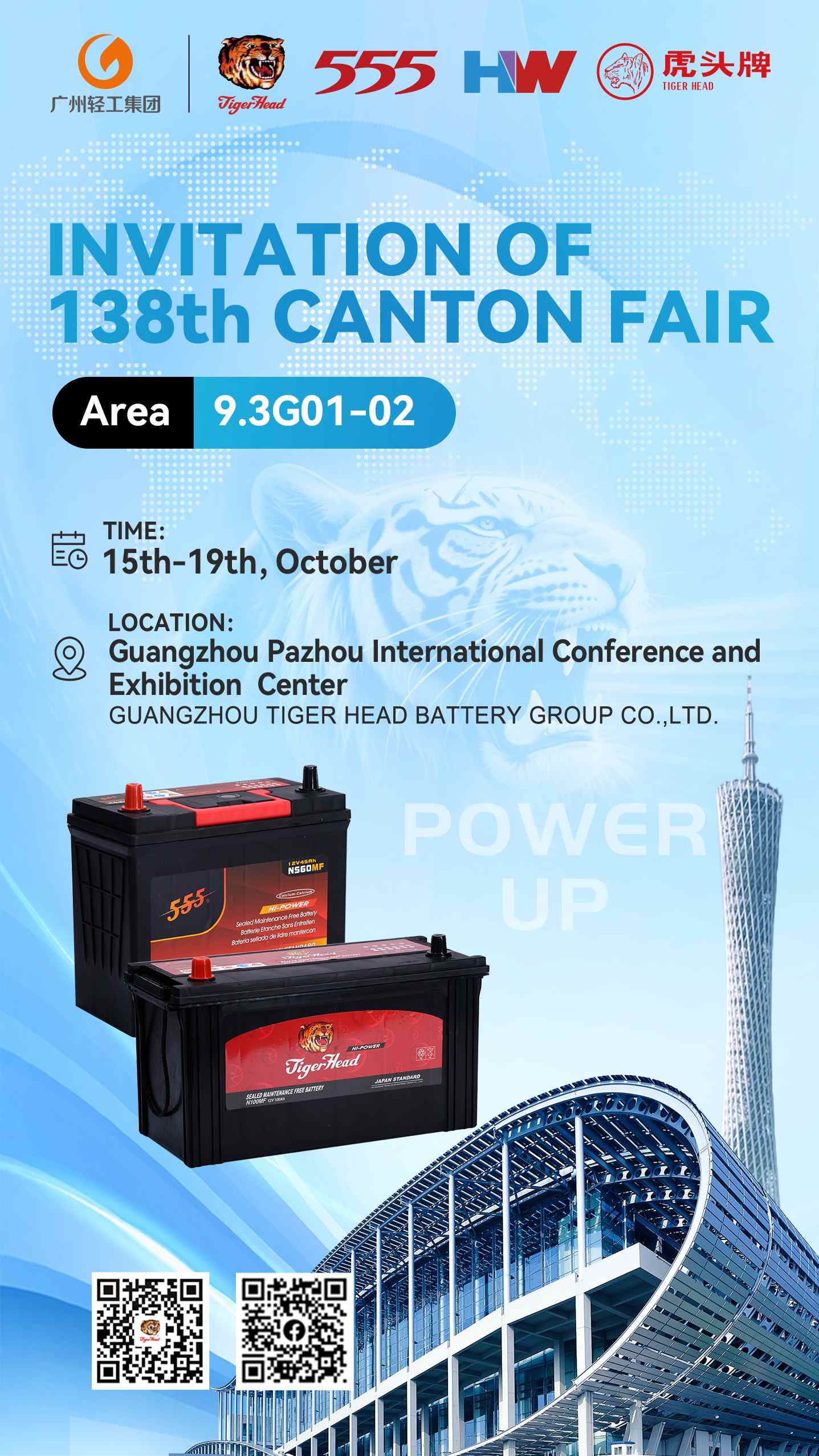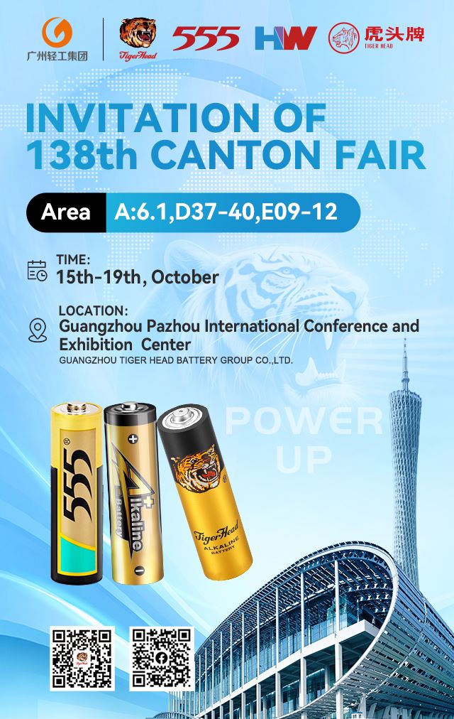 يسرّ مجموعة تايجر هيد للبطاريات دعوتكم لزيارة جناحنا في معرض كانتون الدولي الـ 138، حيث سنعرض أحدث ابتكاراتنا ومنتجات البطاريات عالية الجودة. سيُقام هذا المعرض التجاري الدولي المرموق في مجمع معارض الصين للاستيراد والتصدير بمدينة قوانغتشو الصينية.