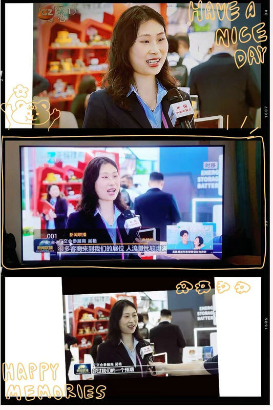 خلال المعرض، أجرت CCTV وGuangdong TV ووسائل الإعلام الرئيسية الأخرى مقابلات متعددة حول وضع معرض Tiger Head Battery ، حيث استقبلتهم مديرة المبيعات الخارجية Sally Wu. في اليوم الأول من معرض كانتون، قدمت CCTV News وGuangdong TV تقارير عن وضع معرض شركتنا، بينما قامت أيضًا بالترويج للمنتجات على منصة CCTV المباشرة، مما أدى إلى تعزيز الوعي بالعلامة التجارية وصورة الشركة.