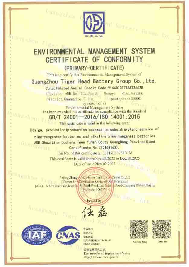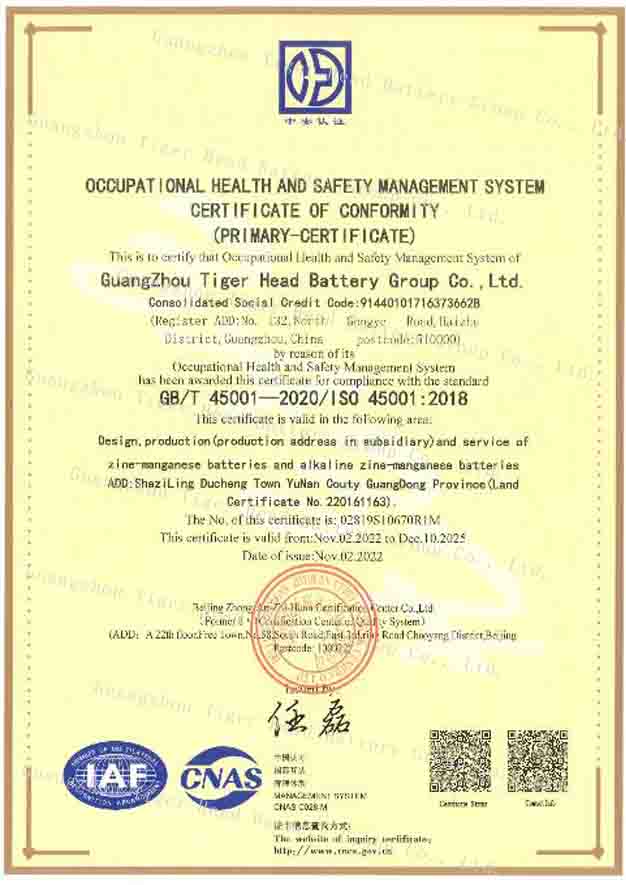 في الآونة الأخيرة، أجرت شركة ZHONGAN ZHIHUAN Certification Center CO., LTD (راجع ZAZH) مراجعة موقعية شاملة ومفصلة وصارمة لأنظمة الإدارة البيئية والمهنية لدينا وفقًا للمتطلبات القياسية، والتي يعد نظام إدارة الجودة بمثابة تدقيق سنوي لها ونظام إدارة الصحة البيئية والمهنية عبارة عن تدقيق لإعادة الاعتماد. بعد عدة أيام من التدقيق، استوفت جميع عناصر التدقيق الخاصة بـ Tiger Head Battery المعايير. حصلت Tiger Head Battery على شهادة نظام إدارة الصحة البيئية والمهنية ونظام إدارة الجودة.