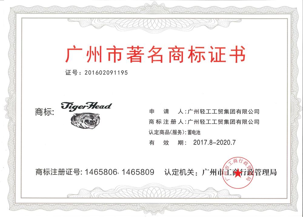 2017-2020 شهادة العلامة التجارية الشهيرة في قوانغتشو - بطارية تخزين رأس النمر