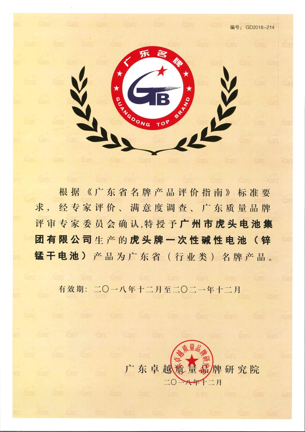 2016-2019 شهادة العلامة التجارية الشهيرة قوانغدونغ