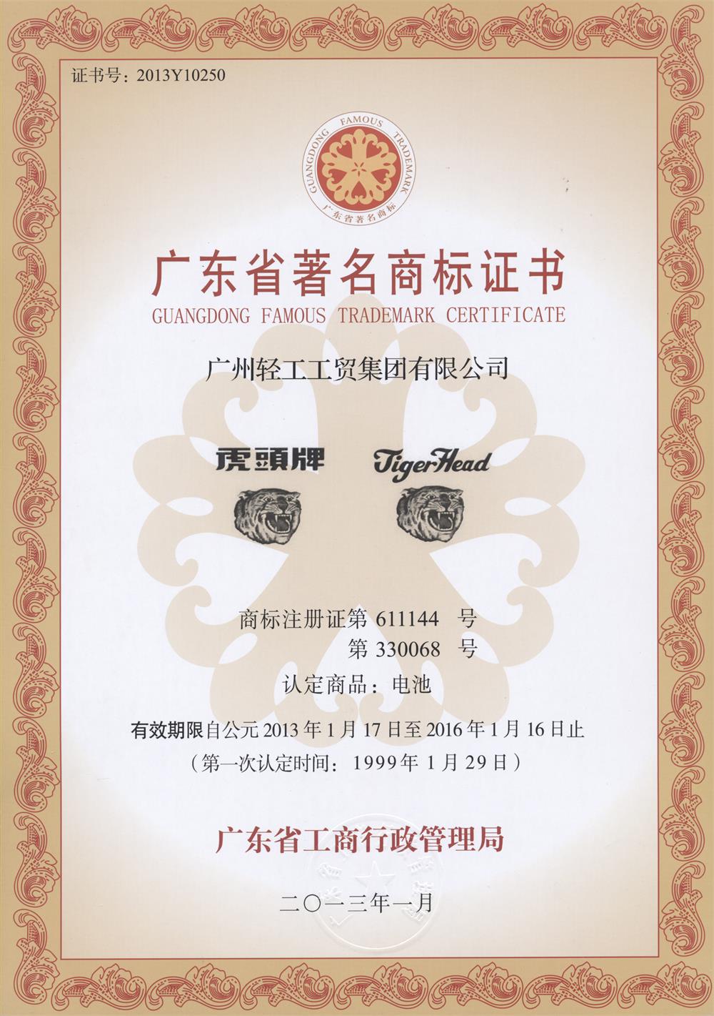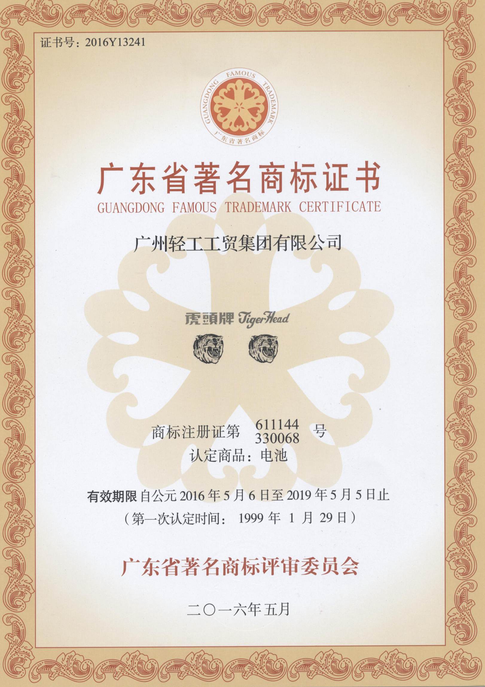 2013-2016 شهادة العلامة التجارية الشهيرة قوانغدونغ