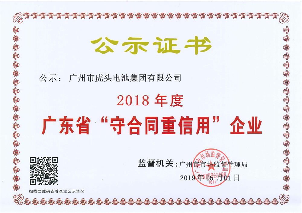 شهادة مؤسسة "مراقبة العقود وتقييم الائتمان" بمقاطعة قوانغدونغ لعام 2018